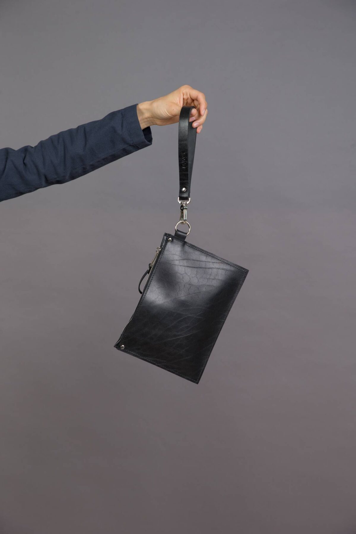 Forstærk din stil med denne elegante sorte læderclutch fra PYKOK. Den er skræddersyet til den moderne kvinde og kommer med luksuriøst læder udvendigt samt et praktisk håndledshåndtag. Denne clutch er ikke kun en tilfældig accessory, men din ultimative ledsager for at bære dine essentielle genstande med flair – den er ideel til aftenture eller særlige begivenheder. Med denne clutch gør du ikke kun entré, du gør indtryk.